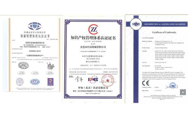 ● 公司成立至今,榮獲了多項(xiàng)證書(shū),其中包括《中國(guó)注塑機(jī)十大品牌》、《廣東省信得過(guò)單位》等一些榮譽(yù),提為國(guó)家高新技術(shù)企業(yè),及多項(xiàng)專(zhuān)利。
